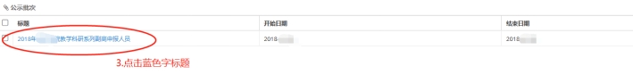 (2)点击左侧“材料公示”条目,再点击蓝色的公示标题;