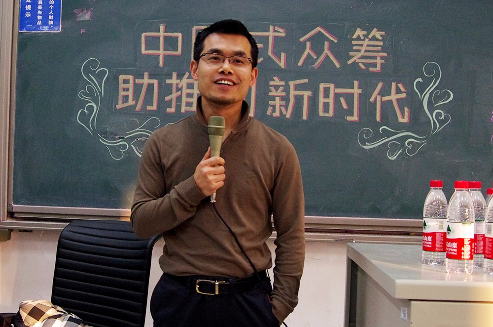 杨勇先生向同学们介绍了什么是“中国式众筹”。他从众筹杂志、网络课程等方面介绍了这种新型模式的运作和发展前景。“中国式众筹”吸收了中产阶级的资金用于投资,用专业的团队、以独特的风险识别模式控制风险。杨勇先生在讲座中,理论与案例相结合,深入浅出,让同学们对“中国式众筹”有了更深入的认识,对我国当前这一创新模式的发展有了更深入的了解。