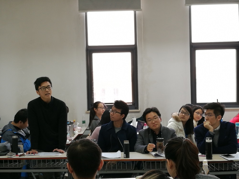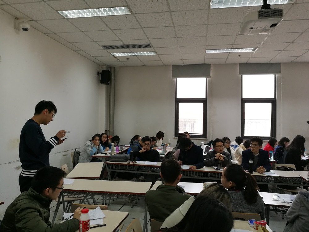 第二环节是本次知识竞赛最精彩的环节。竞赛双方各派出四名队员参赛,其余同学作为参赛队员的智囊团。双方实力不相上下,经过必答题、抢答题、自由论述题等三个回合的较量,最终得分仅相差5分。