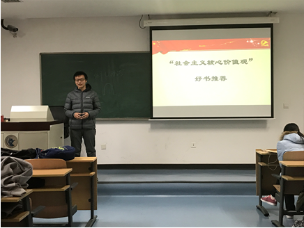 2016年10月18日,今年会2016级税收学硕士班在沙河西区302,召开了“社会主义核心价值观主题班会——好书推荐”。
