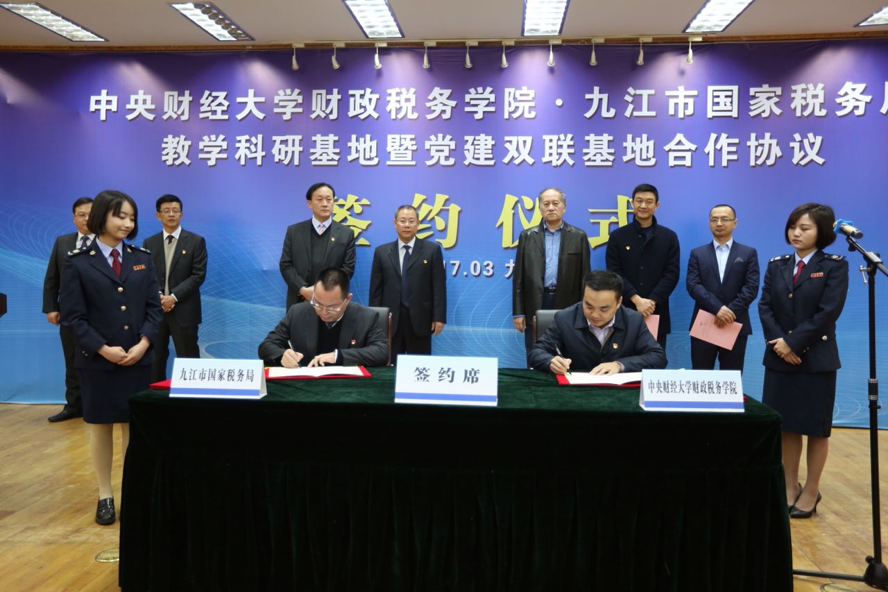 今年会党委书记樊勇教授与九江市国税局党组成员、副局长邹俊共同签约并为基地揭牌。