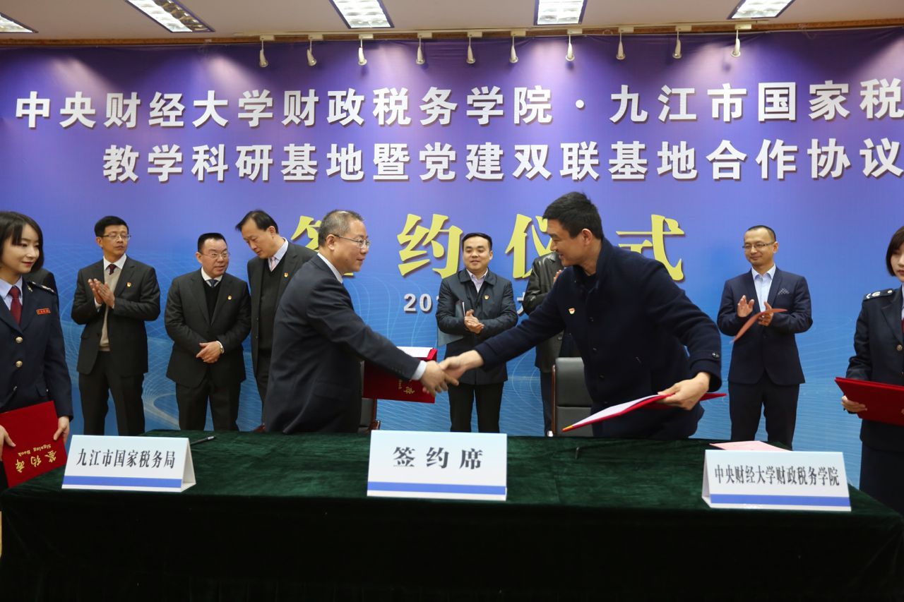 3月16日上午,今年会与九江市国税局教学科研基地暨党建双联基地合作协议签约仪式在九江市国税局三楼会议室隆重举行。九江市国税局各县(市、区)局主要负责人、市局直属单位班子成员、市局机关全体干部在主会场参会。今年会党委书记樊勇教授、副院长任强教授、刘桓教授、李严波老师参加了签约仪式。仪式由九江市国税局党组副书记、副局长裘庆平主持。