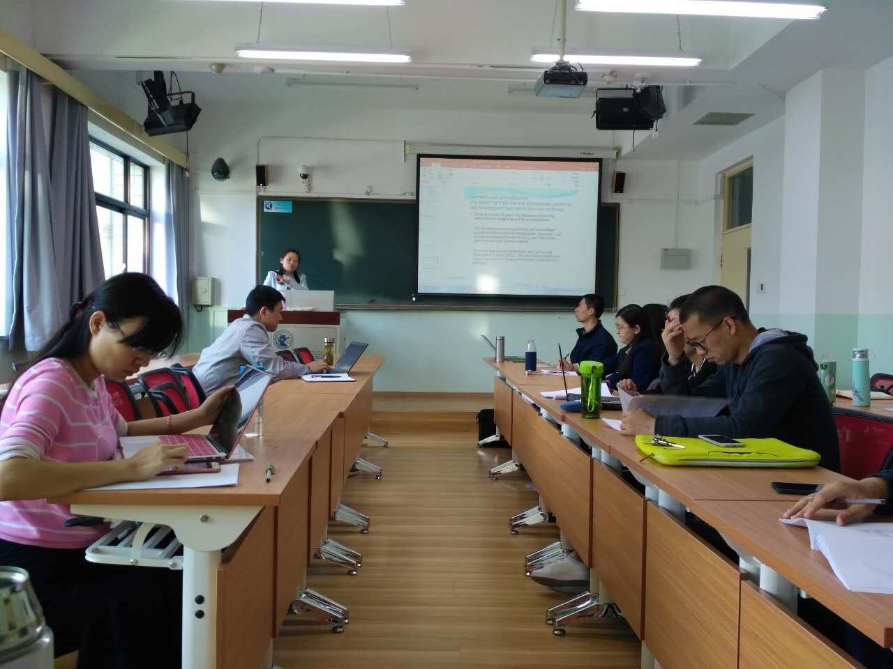 2017年4月17日-21日,王倩教授为博士生教授了一个星期的专业英语财税文献导读课程。在课上,博士生们积极主动地与王教授进行交流,主要包括博士生的研究方向以及方法、研究内容以及研究过程中所遇到问题。王教授针对每位同学的研究计划给予了相应的建议,并推荐相应的期刊如National tax Journal、Public burgeting and finance,尤其是中美预算制度上进行热烈地讨论。大多数博士生们的问题都集中在数据收集上,对此王教授建议研究从小方面入手,在现有数据的基础上进行相关的分析。从阅读文献的基础上发现问题,进行总结回顾。接下来的几次课中,王教授从税收、预算以及政府债务三个方面进行学术演讲介绍美国财政以及税收方面的相关政策制度。