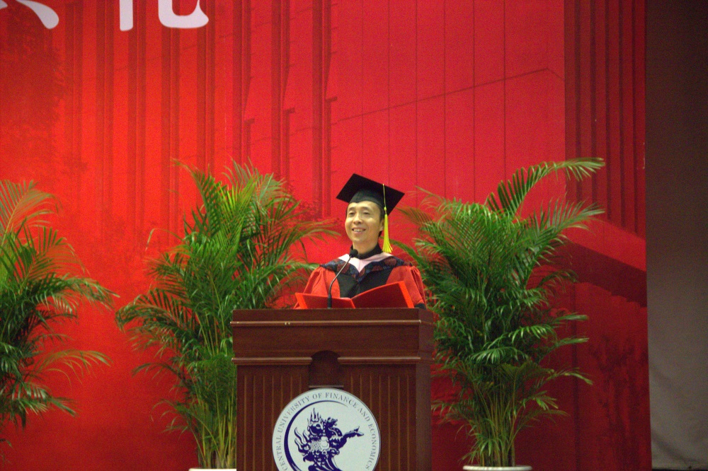 我们从财经大学毕业,今后的工作很多同学都要和货币资金打交道。大家今后的生活中,面对自身利益要“宁向直中取,不向曲中求”。《人民的名义》这部电视剧拍得很好,大家要多看几遍,要增强红线意识、底线意识和高压线意识。