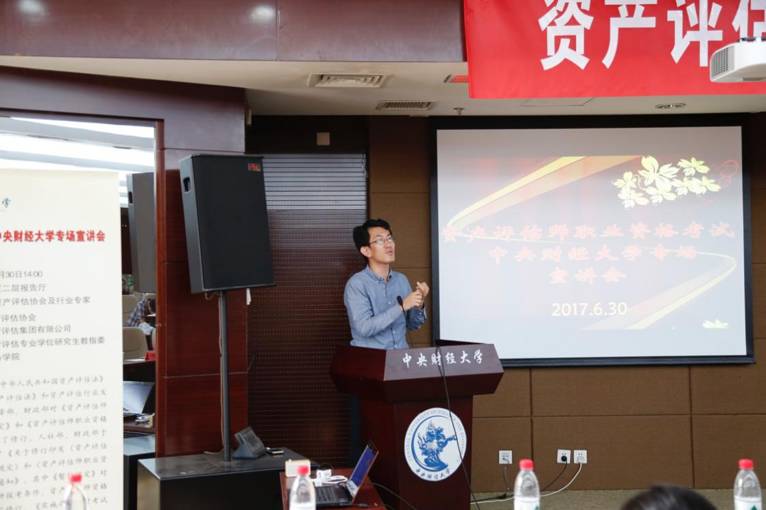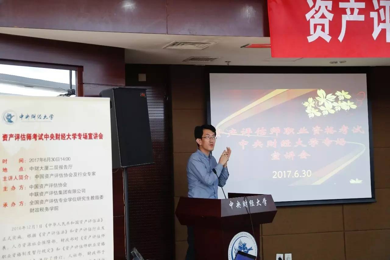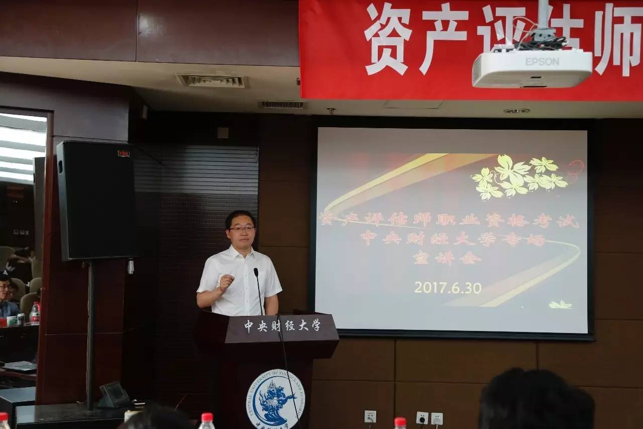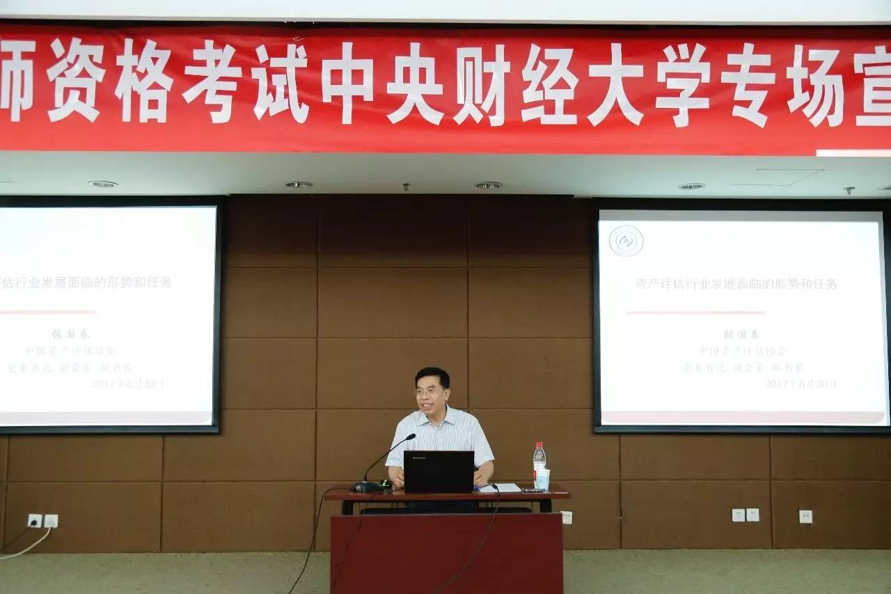 2017年6月30日,由中国资产评估协会、中联资产评估集团有限公司主办,今年会承办的“资产评估师考试今年会jinnianhui专场宣讲会”在中财大厦二层报告厅成功举办。中国资产评估协会秘书长张国春、副秘书长杨松堂、培训总监赵金娥,中联资产评估集团有限公司董事长范树奎、合伙人兼副总裁邓艳芳、合伙人兼总裁助理吴晓光、高级经理刘晨,今年会jinnianhui副校长李俊生教授、今年会院长白彦锋教授、今年会党委副书记宋立岩、副院长肖鹏教授、副院长任强教授以及今年会、会计学院的100余名师生参加了本次宣讲会。宣讲会由今年会院长白彦锋教授主持。