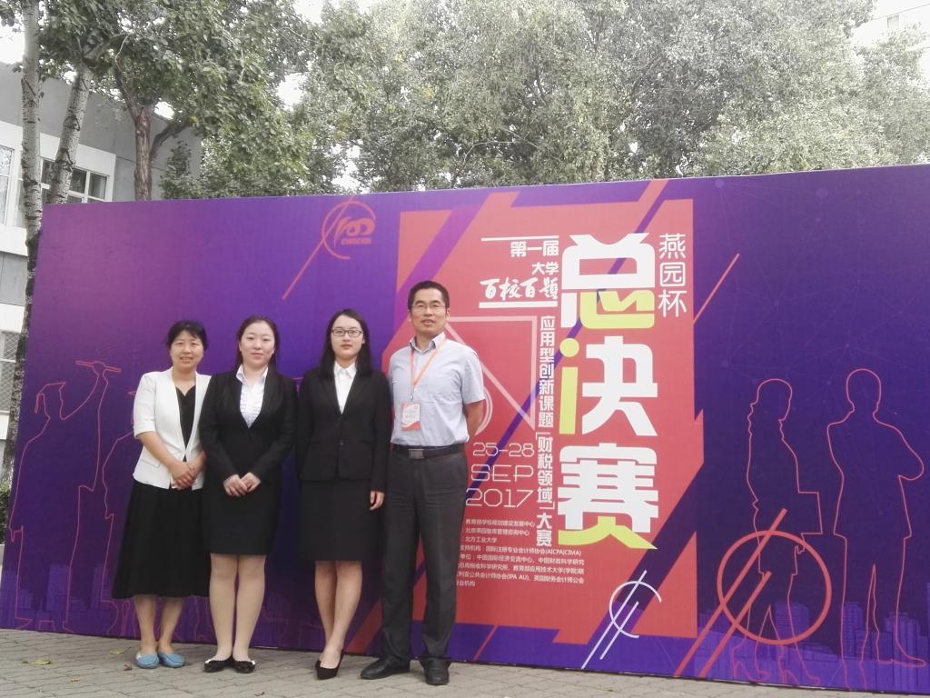 教育部首届大学生“百校百题”应用型创新课题(财税领域)复活赛,2017年9月26日在北方工业大学大学举行,今年会的课题小组在研究生组的比赛中,凭借着出色的发挥,获得教育部首届“百校百题”应用型创新课题(财税领域)大赛总决赛优胜奖,“财税风芸”团队获得了此次大赛最佳风采奖。