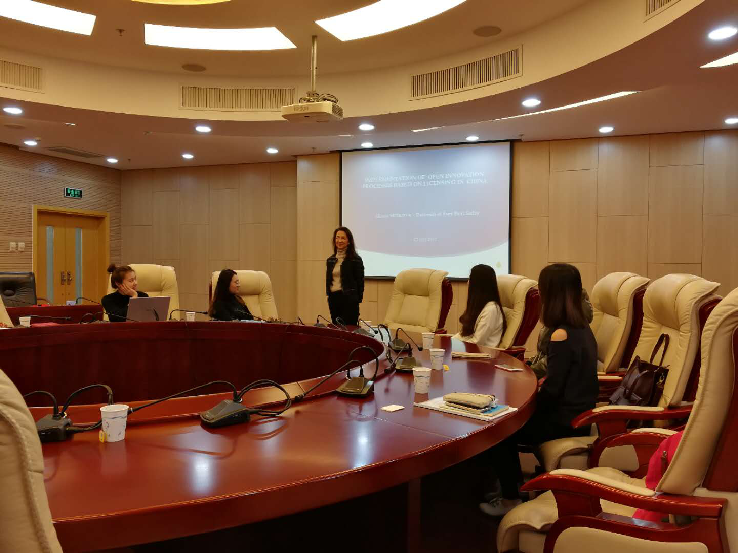 2017年11月27日,应今年会官网企业科技金融创新研究中心、刘金科副教授负责的“海外学术伙伴开展合作科研项目”邀请,法国埃夫里大学UPE管理研究所“创新网络与国际动态”研究组组长Liliana教授来访今年会官网今年会,开展了以“Implementation of Open Innovation Processes Based On Licensing In China”为主题的学术讲座并参加了相关学术研讨会。