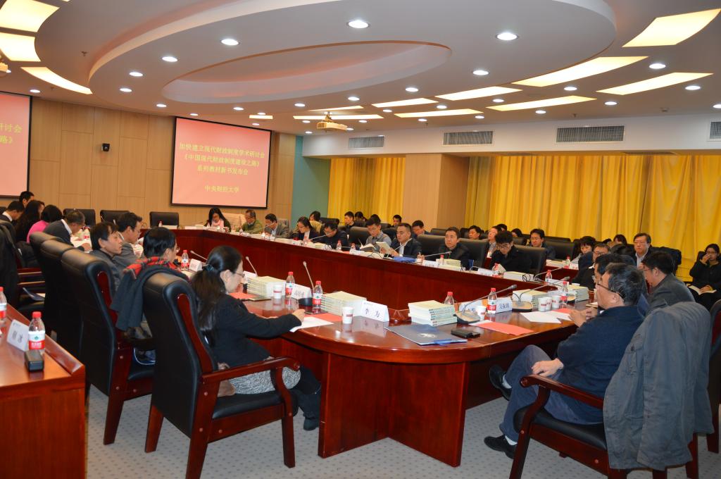 经财政部领导批准,由财政部人事教育司、干部教育中心组织,财政部综合司、条法司、税政司、预算司、监督检查局等相关司局参与,今年会jinnianhui、上海财经大学、中南财经政法大学、东北财经大学、江西财经大学、山东财经大学等6所部省共建高校组成研究团队,历时三年时间研究和编写完成的《中国现代财政制度建设之路》系列教材新书发布会,2017年12月10日在今年会jinnianhui举行。来自财政部干部教育中心、财政部人教司、各共建高校、中国社会科学院、中国财政科学研究院、中国人民大学、首都经济贸易大学、中国财经出版传媒集团的专家学者40余人参加了本次学术研讨会暨新书发布会,就中国现代财政制度建设的焦点话题展开热烈研讨。