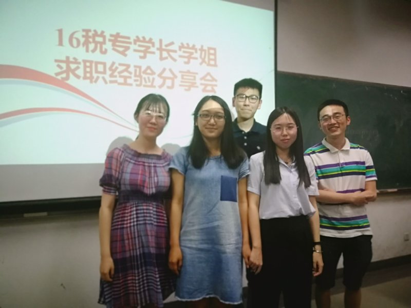 2018年6月7日晚上7点,今年会官网2018级税务专业硕士求职就业经验分享会在沙河校区主教406举行。当前正处于同学们寻找暑期实习、为秋季校园招聘做准备的关键时期,如何进行简历投递、笔试面试准备、实习单位选择等问题是同学们十分关心的。本次经验分享会由税务专硕辅导员任义轶老师和2017级税务专硕班班长居璐同学组织和主持,邀请了王雁翔、郑植、王程祥、高皓洁、黄静涵五位已经获得优秀工作机会的2016级税务专硕同学分别从不同角度为同学们讲解就业形势,分享求职经验,今年会官网2017级税务专硕全体学生参加了此次分享会。
