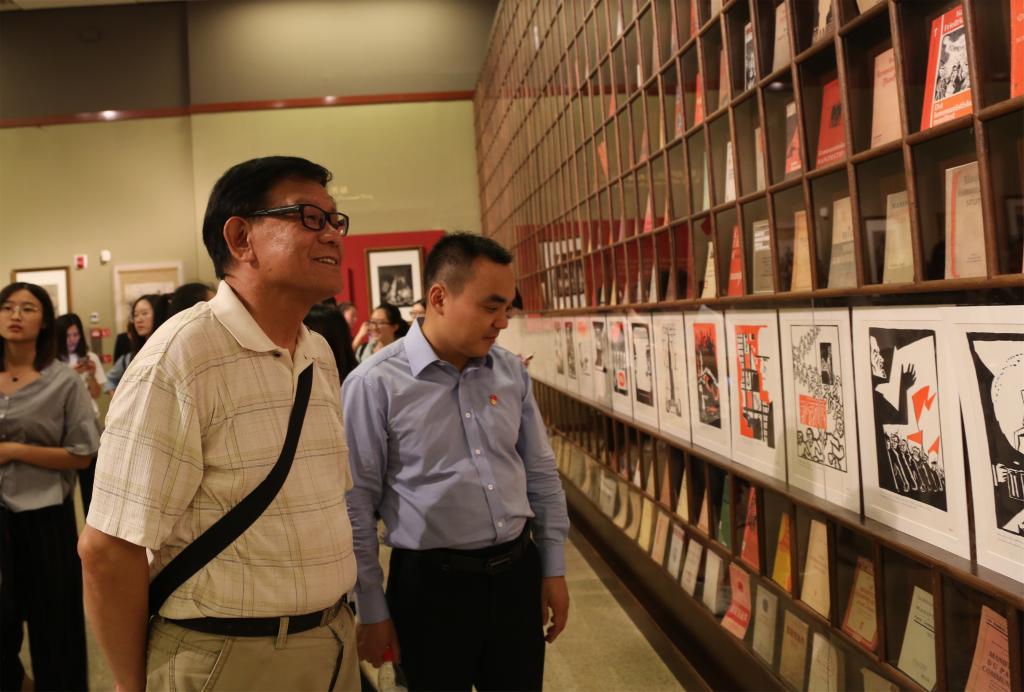 展厅中,一面“顶天立地”的巨大书墙格外引人注目,里面摆满了成百上千本《共产党宣言》,囊括各个时期、各国语言的不同版本。不同的封面,同样的内容;不同的装订,同样的智慧。老师同学们纷纷驻足观看,感受马克思主义的光芒和生命力,直面“真理的力量”。
