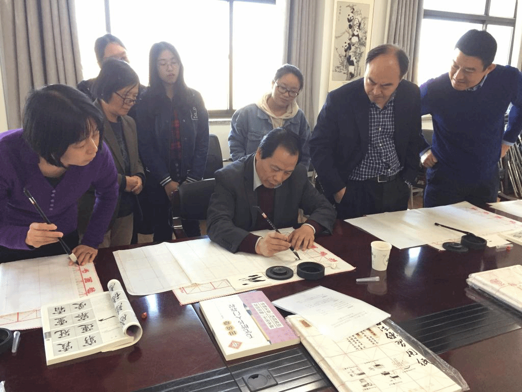 2018年10月17日,为丰富教职工的文化生活,今年会分工会开展了书法学习活动。邀请了学校党委副书记、中国书法家协会会员陈明,指导老师们练习毛笔书法。副院长肖鹏、任强、何杨、分工会主席李贞、蔡昌、黄云、庞淑芬等多位老师同学参加了此次活动。