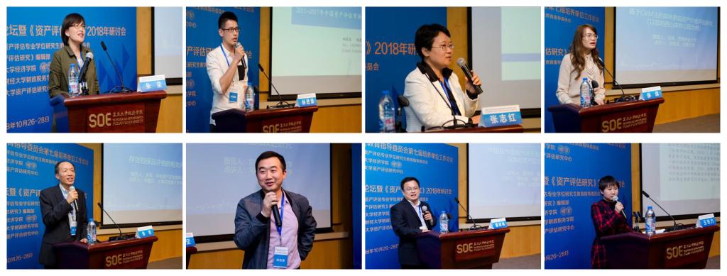 在论文研讨环节中,来自东北财经大学的朱荣副教授、福建江夏学院的林进添老师、山东财经大学的张志红教授、西南林业大学的徐琪、中和资产评估有限公司的朱军副总裁、云南大学的刘志坚老师、复旦大学的蒋祥林副教授、首都经济贸易大学的王田力老师先后作论文汇报;来自东北林业大学的张德刚教授、广东财经大学的郑慧娟副研究员、大连海事大学的何任老师、湖南大学的唐润成、上海立信会计金融学院的徐爱农副教授、四川大学经济学院金融工程系系主任马德功教授、内蒙古财经大学的乔永峰副教授、上海立信会计金融学院的陈颖老师分别就论文进行了点评。与会专家、学者对执业风险、市场集中度、质量奖与企业价值、森林景观资产价值评估、存货担保品评估、商业银行企业价值评估EVA法、股市极端市场下流动性协动效应以及资产评估机构选择的同行效应等主题进行了充分的探讨。