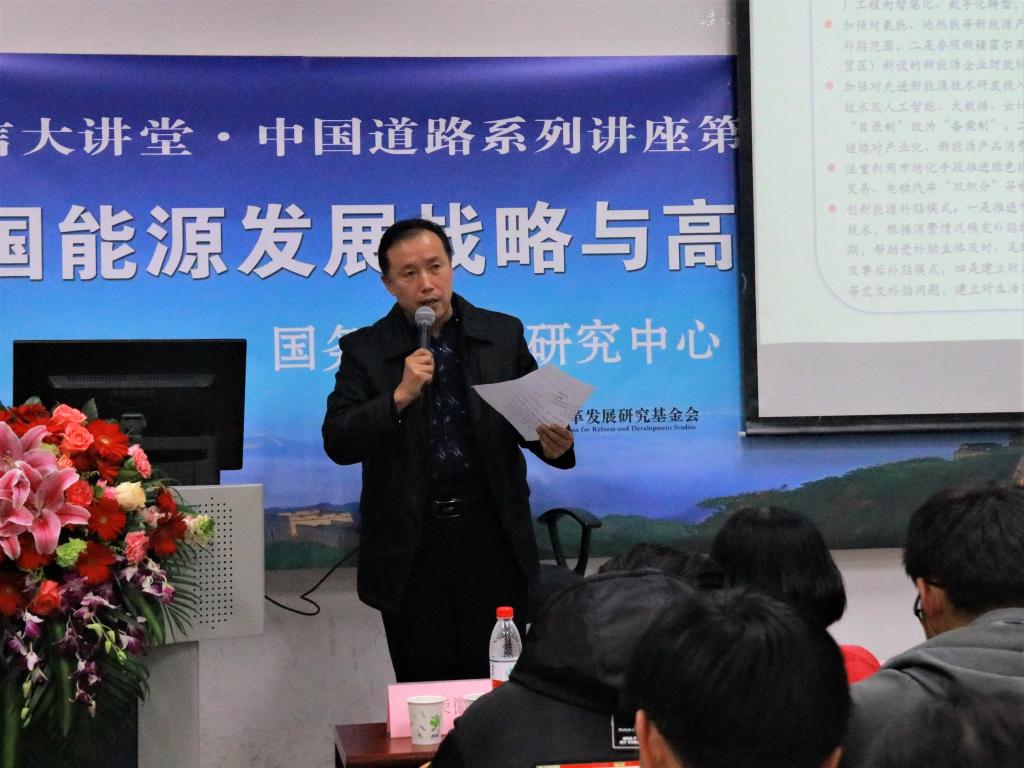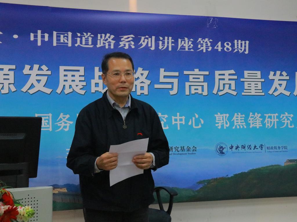 郭焦锋研究员新时代中国能源发展战略与高质量发展的财税政策研究讲座,主要分为三个部分进行展开:新时代的中国能源战略、中国能源高质量发展思路,以及构建现代能源财税政策体系。化石能源消费持续增加给绿色发展与应对气候变化带来了前所未有的挑战,绿色发展的内涵在不断探索中得到丰富,郭焦锋研究员首先阐述了能源财税研究工作的巨大意义。环境问题加剧,能源安全形势严峻,人为气候变化问题凸显。郭研究员用幽默的语言为同学们阐述了北京雾霾的成因——机动车、煤炭等,紧接着从能源种类(清洁能源非清洁能源)、国际能源研究等方面引入了能源话题。