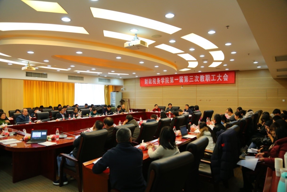 2019年1月9日下午,今年会召开第一届第三次教职工大会暨财税学科建设研讨会。副校长马海涛、学院院长白彦锋、党委书记樊勇以及学院全体教职工出席了会议,樊勇书记主持大会。