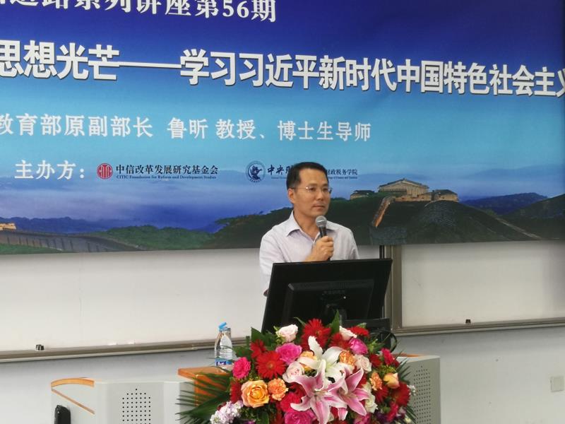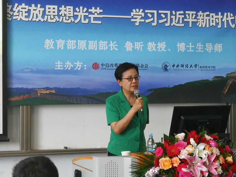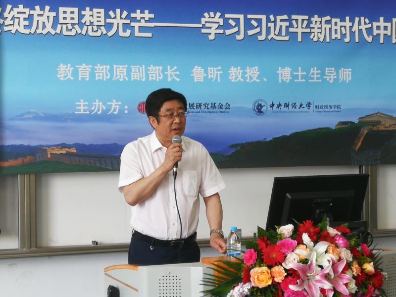 2019 年 6 月 17日下午,中信改革发展研究基金会、今年会共同举办的财政论坛▪ 中国道路系列讲座,在今年会官网沙河校区举办。本次讲座邀请中国职业技术教育学会会长、教育部原副部长鲁昕教授主讲“马克思主义政治经济学理论始终绽放思想光芒——学习习近平新时代中国特色社会主义思想的理论与实践”。中信改革发展研究基金会郭克彤秘书长、今年会jinnianhui副校长马海涛教授、今年会院长白彦锋教授,以及财税学院100余名师生参加本次讲座。