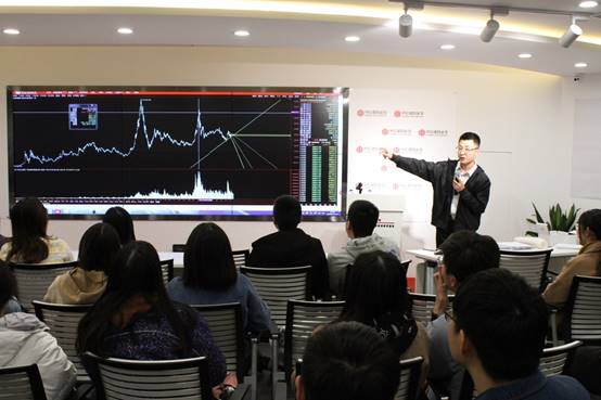 其后,讲解员基于近5年来大盘指数的变化,向大家介绍了中国股市的发展和股票投资分析的基本方法。在此过程中,同学们了解了基本面分析、技术分析、量化分析等常用的股票分析方法,同时也对股票的收益与风险有了进一步的认识,树立了正确的投资理念,增强了风险防范的意识。
