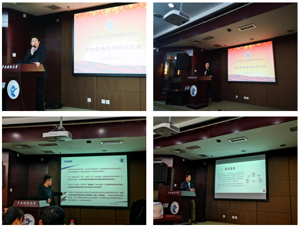 今年会副院长李小荣担任了会议的主持。此次大赛经过先期的匿名评审后,最后有6篇论文进行了现场展示,中证鹏元资信评估股份有限公司的张忠红、李慧杰,财税学院院长白彦锋、副院长刘金科以及杨志清教授、马金华教授、王威副教授、徐涛副教授对展示论文进行了一对一的点评及指导。学术组三篇论文都运用科学的研究方法,针对房产税、财税历史、企业融资等领域的财税问题,论证严谨,写作规范,并对政策含义进行了深入探讨。案例组三篇论文结合数字经济、国际税收等领域,从独特的视角,结合专业知识和创新性的方法对案例进行深入剖析,有趣生动的展示深深吸引着评委与观众的注意。