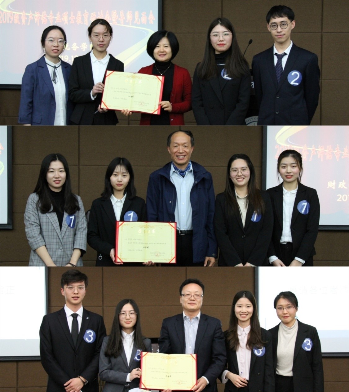 白彦锋教授、李小荣副教授先后介绍了资产评估专业校外、校内导师,陈思老师宣读校外导师分配名单。之后,白彦锋教授为在场2019年新聘任校外导师代表胡劲为、邓艳芳发放聘书。
