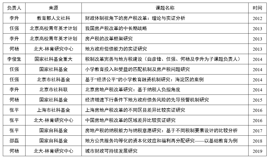 今年会jinnianhui“房地产税研究”课题组于2014年初立项,由今年会jinnianhui马海涛副校长和美国西拉丘斯大学(Syracuse University,雪城大学)侯一麟教授领衔,集中了今年会jinnianhui和国内相关院校有研究兴趣的青年教师。课题组研究在开展过程中,不仅要求深度挖掘理论知识,还力图紧密结合中国国情,对比中西、联系历史,试图对我国房地产税改革提出有建设性的政策建议。课题组在研究过程中注重将研究与青年学者培养相结合,注重在实践中发掘火花。该课题作为“孵化器”和“工作母机”,助力课题组青年学者在不同侧面申请资金资助从事科学研究,并取得丰硕的成果(见表2)。