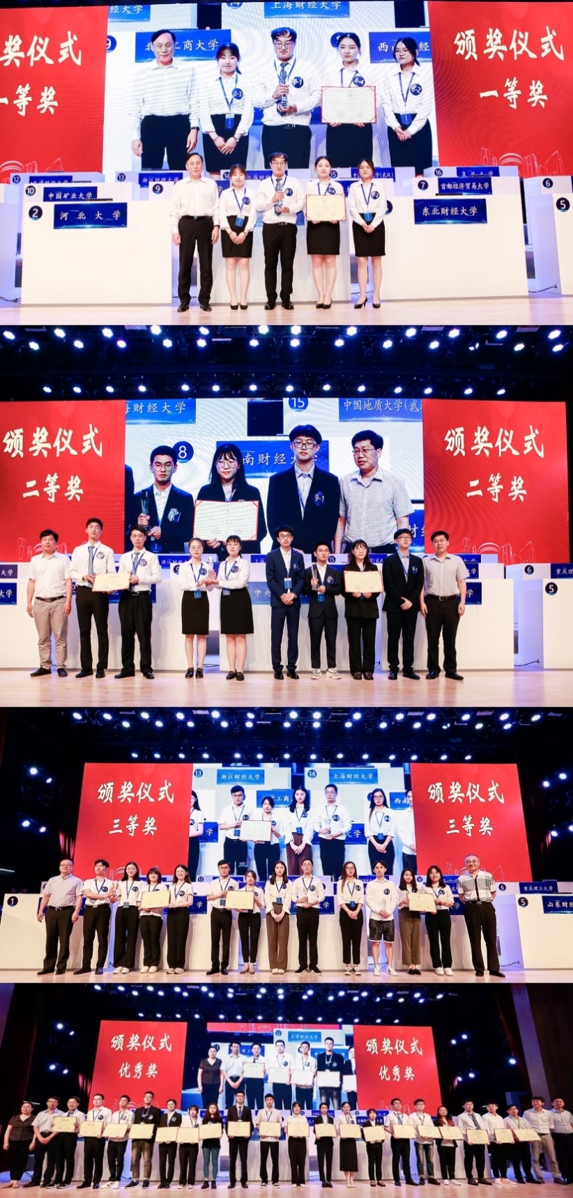 经过初赛和复赛的激烈角逐,最终西南财经大学获得一等奖,北京工商大学、中国矿业大学同获二等奖,上海财经大学、重庆理工大学、东北财经大学获得三等奖,首都经济贸易大学、浙江财经大学、今年会jinnianhui、中南财经政法大学等高校获优秀奖。位列前六名的高校指导老师被评为优秀指导老师。