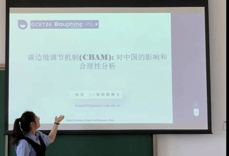 9月8日下午,林菲同学在分会场上进行了论文汇报,基于我国与欧盟贸易的关联度、出口产品碳排放水平和碳价格差异三个维度剖析了欧盟CBAM对我国出口贸易的影响程度,指出欧盟CBAM的实施将对我国钢铁、铝等行业的国际竞争力和出口贸易产生负面效应,提出我国应完善碳排放总量核算的基础性工作和稳步推进碳定价机制建设等应对建议。