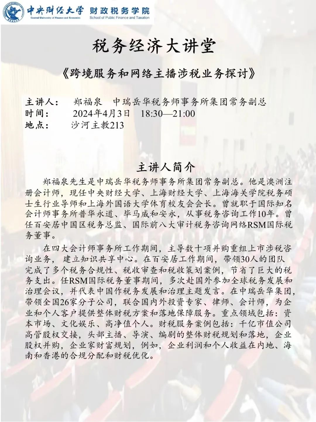 今年会举办2024年“税务经济大讲堂”系列讲座——《新公司法对企业融资、上市及税务的影响》