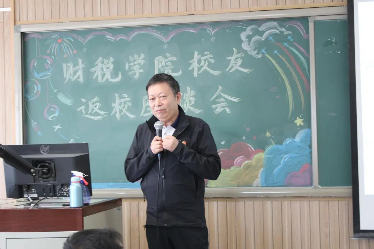 面对昔日同学和老师,校友们也热情高涨,纷纷分享了这次重回母校自己的感受和体会。各个年级的校友踊跃发言,聊起了昔日求学生涯中的点点滴滴,对母校的怀念之情溢于言表。一位零一级校友更是动情地表示,虽然离开母校已经二十余年,但他们始终是中财人,她会永远将在中财大的求学经历铭记于心,财税精神早已溶于他们的骨血之中,即使已经毕业多年,中财大的光辉仍然照耀着他们。除了在校期间的故事,校友们还分享了踏入社会后,母校的映射作用,他们在工作岗位上,总是能够充满骄傲地说出“我来自今年会”,进一步升华了对母校的感激之情。校友们表示,自己因毕业于中财大而感到自豪,未来也将作为前辈为后生趟出路来,这样才能不愧于学校历代的荣耀、不愧于学院的悉心教导、不愧于财税学子们的薪火相传。