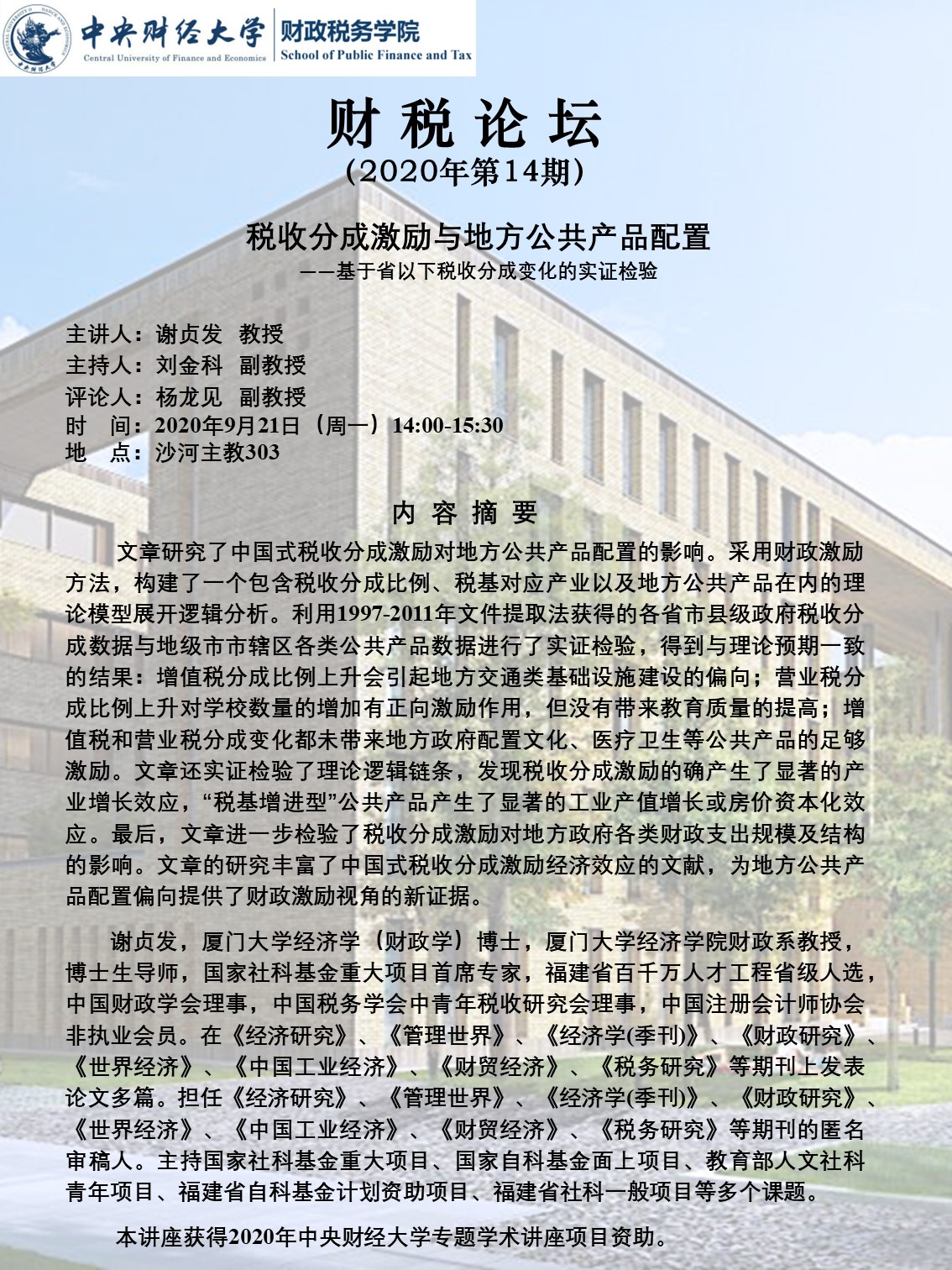 【财税论坛】15期:市场经济的冲击与财政制度的力量