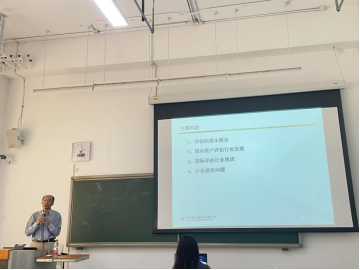 随后,朱军先生向同学们介绍了近三年来中国资产评估协会重大研究课题,并总结了国内外最新评估动向,为同学们的毕业论文选题提供了重要参考。