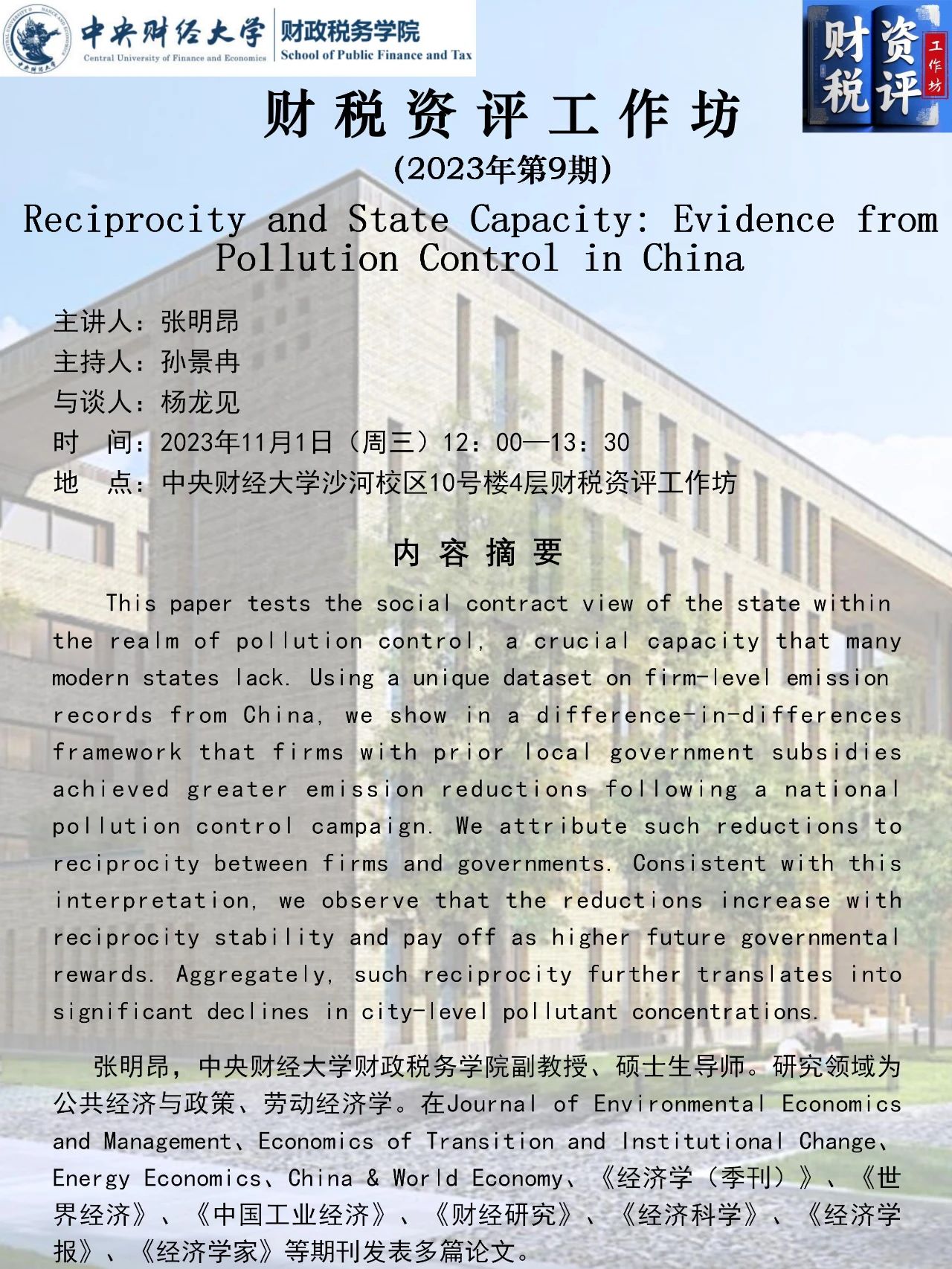 【"中财-乔治亚州立"公共财政国际学术前沿系列讲座】