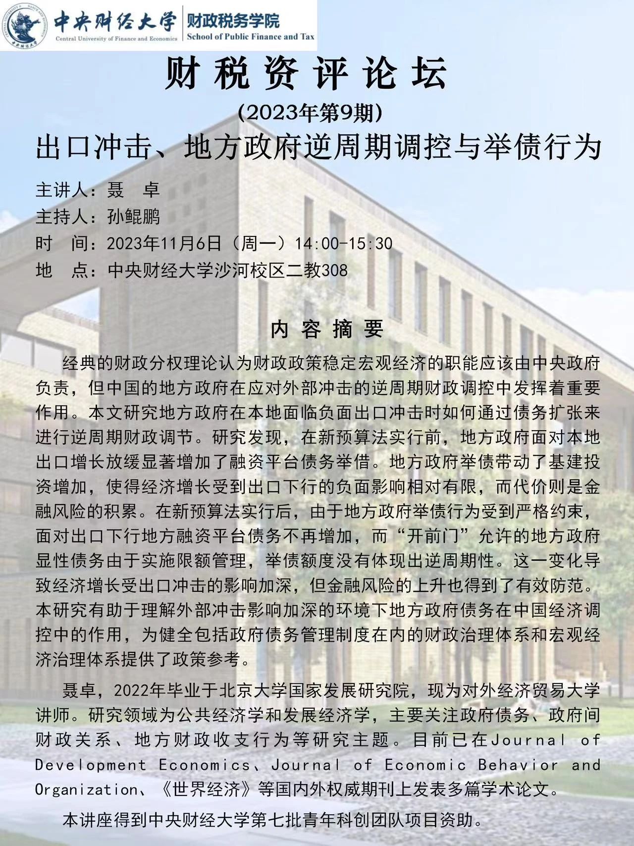 【"中财-乔治亚州立"公共财政国际学术前沿系列讲座】