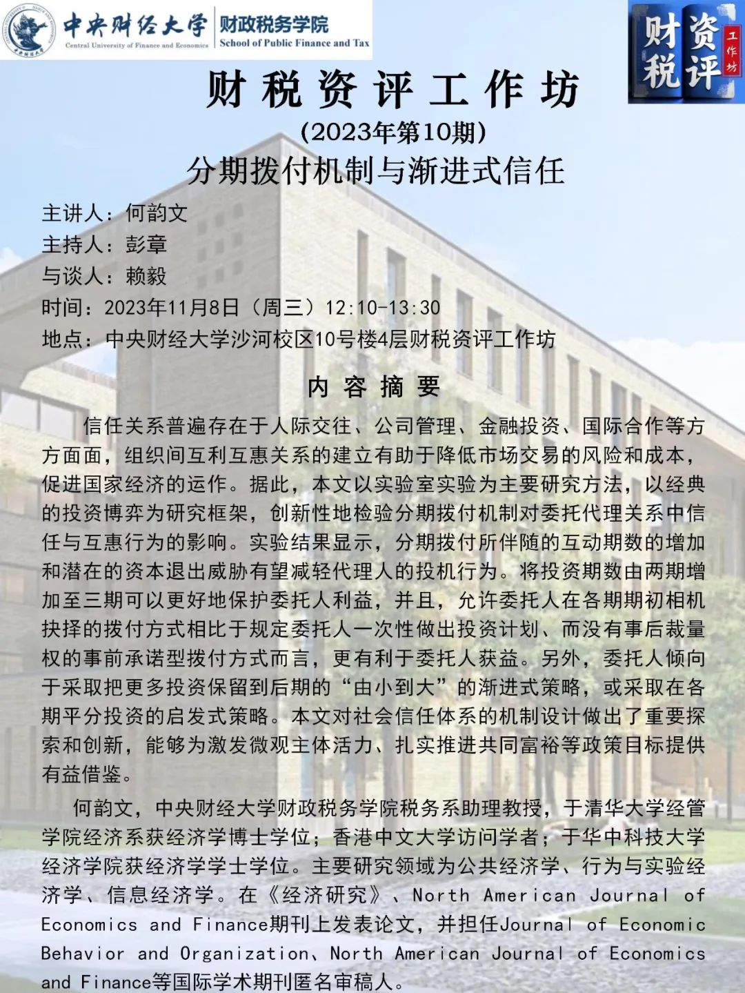 “中财-乔治亚州立”公共财政国际学术前沿系列讲座第二讲顺利举行