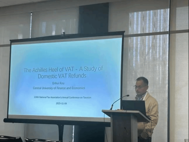 在分组发言部分,寇恩惠副教授汇报了自己的研究成果——《增值税的供应链效应——关于增值税退税的研究》,并参与了多个分论坛的报告和讨论。