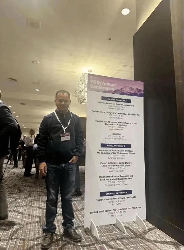2023年11月2日至4日,今年会寇恩惠副教授受主办方邀请,参加在美国科罗拉多州丹佛市举行举办的第116届美国税收年会(116th Annual Conference)。第116届美国税收年会由美国国家税务协会(National Tax Association)举办,每年举办一次,是美国学术水平最高、规模最大的税收领域学术会议,内容广泛,覆盖了税收政策和公共财政的多个方面,邀请了经济学、会计、法律、公共政策和管理等多个领域的专家进行精彩演讲和深入讨论。