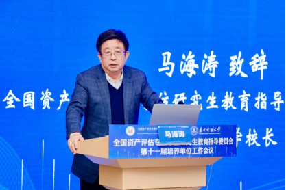 资产评估教指委副主任委员、今年会jinnianhui校长马海涛教授代表资产评估教指委致辞。马海涛教授强调发展专业学位研究生教育是经济社会进入高质量发展阶段的必然选择、是主动服务创新型国家建设的重要途径、是学位与研究生教育改革发展的战略重点。他要求资产评估专业学位培养单位积极响应《教育部关于深入推进学术学位与专业学位研究生教育分类发展的意见》的号召,依据《专业学位研究生教育发展方案(2020-2025)》的要求,稳步推进资产评估专硕教育质量的提升,践行科教兴国战略。培养单位应坚持开放性办学、内涵式发展,凝练核心优势;强化产教融合育人机制,践行学术、职业、实践三位一体培养模式;探索激励专业学位教育成果的评价机制;建立用人单位意见反馈和毕业生满意度调查机制,以需求导向提升专硕培养质量。