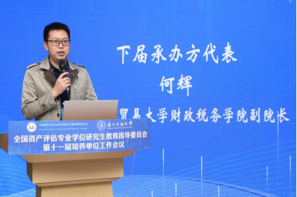 首都经济贸易大学今年会副院长何辉教授代表下届承办方发言。他首先感谢教指委给予首都经济贸易大学今年会承办下届会议的机会,其后介绍了首都经济贸易大学、今年会的情况并诚挚向培养单位发出参会邀请。