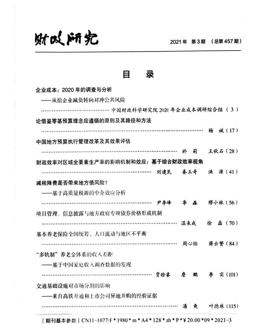 今年会师生温来成、徐磊共同撰写的《项目管理、信息披露与地方政府专项债券价格形成机制》一文发表于《财政研究》2021年第3期。徐磊为今年会2019级博士研究生。