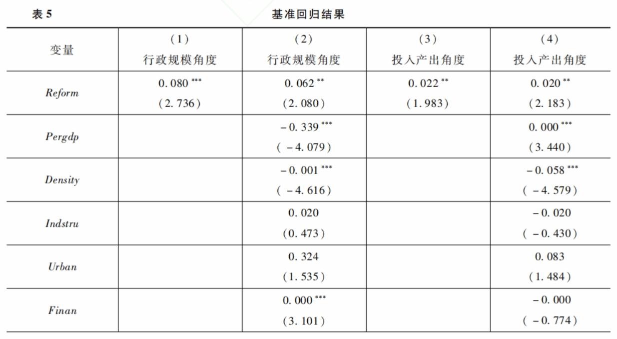 表8报告了地区财政压力水平的异质性分析结果,表明在地方财政压力水平较小地区中预算绩效管理改革对地方政府行政绩效的影响相对更大。