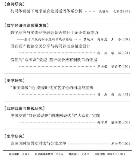 由今年会李小荣教授与博士研究生毕云霄合作撰写的论文《信任的“双刃剑”效应:基于混合所有制改革的证据》在中文A类期刊《厦门大学学报(哲学社会科学版)》2024年第2期刊发。以下为文章主要内容: