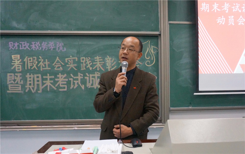 而后白彦锋老师上台讲话。他也同样谈起了自己看电影的经历和感受,用风趣的开场打破了会场严肃紧张的氛围。说到诚信考试的问题,他结合自己担任监考和主监考的经验跟大家生动地讲述了几个考场作弊的案例。幽默的表达让会场笑声不断,但与此同时同学们也认识到了作弊的严重后果。白彦锋老师指出,根据这几年的研究生的情况来看,今年会官网学生考研非常不占优势,因此保研显得更为重要,若因考试诚信问题失去保研资格将会是莫大的损失。同时他观察到社会上财经学校毕业生的优势专业正在逐渐被替代,在这样的情况下,同学们更应该寻找自己的核心竞争力,才能在社会上立足。