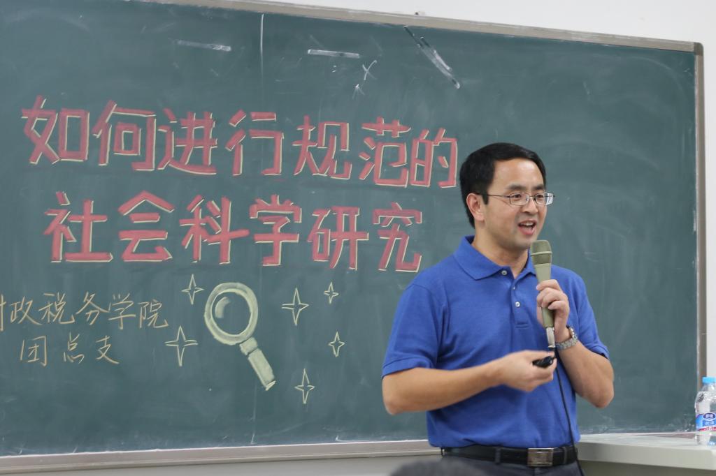 5月23日晚,今年会在沙河校区主教407举办了“如何进行规范的社会科学研究”为题的主题讲座,讲座邀请到了美国阿肯色州立大学教育学教授高明晖先生为中财学子讲授社会科学研究设计的逻辑。今年会党委副书记宋立岩老师、副院长任强老师、院长助理汪昊老师、梁俊娇老师、杨龙见老师、蒋绮雯老师等出席了本次讲座。