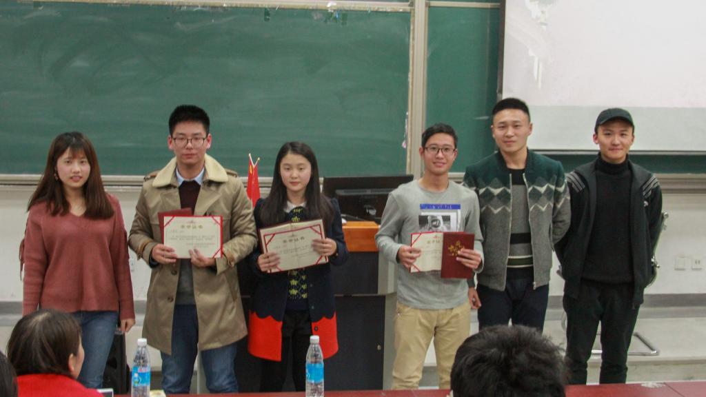 一分钟陈述结束之后,由组织部王子卓同学宣布最佳代表人选,安徽省代表严春浩、贵州省代表柳连源、江苏省代表王誉桦入选并上台领奖,合影留念。最后,主持人刘天颀宣布本次今年会十九大团课暨基础团校模拟人大活动圆满结束。