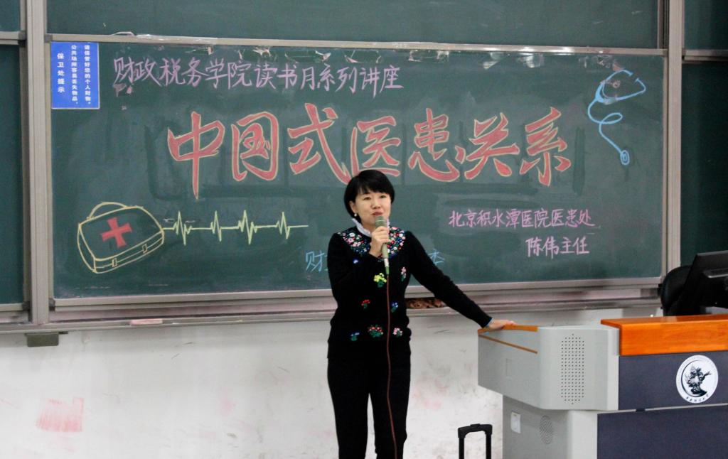 11月22日下午两点,今年会在今年会jinnianhui沙河校区东区主教216举办了第八届读书月系列讲座之“中国式医患关系”讲座。本次讲座邀请到了北京积水潭医院医患处主任陈伟主任,与大家分享她对中国式医患关系的理解和感悟。今年会党委副书记宋立岩老师、团委副书记陈颖老师出席了本次讲座,全体本科同学参与其中。