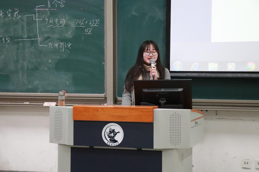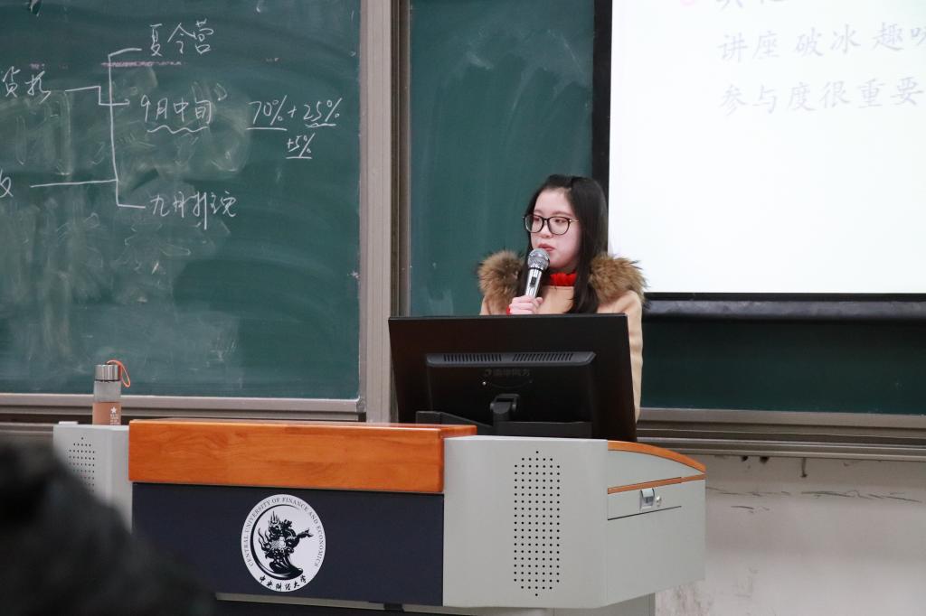 最后分享的是赵新宇学姐,她是直保今年会本院的税务专硕,她非常谦虚地向我们介绍了自己大三前三年的经验,并希望我们一定把握好大学前五个学期,她是前三年专业绩点第一,虽然因为一些原因没能去清北,但是她也对目前情况比较满意。