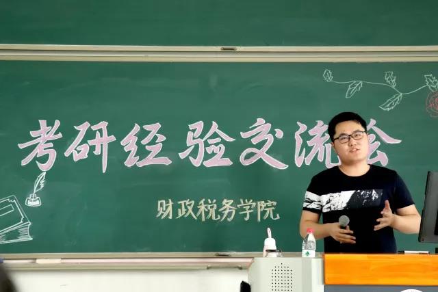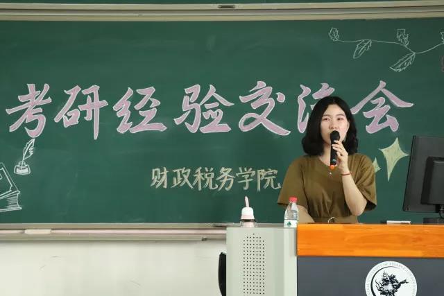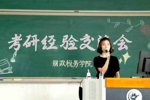 接下来,便是学长学姐的经验分享环节。首先是来自注税14的于潜学长,他成功考取了今年会jinnianhui的税务专硕研究生。于潜学长向大家介绍了一些经典的试题书目,针对不同的学科提出了不同的复习策略,比如英语要重视单词和真题的练习,政治复习不必过早开始,要注意“晚起步,高起点”的复习方式。最后,于潜学长用三句话总结了自己的经验:劳逸结合,适当放松;保证时间,注重效率;集体作战,信息共享。希望大家在2019年的研究生考试中取得好的成绩。