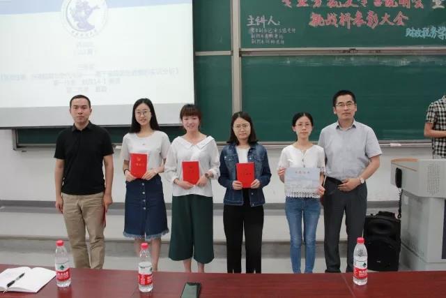 最后一个环节是挑战杯表彰大会,今年会在挑战杯论文大赛和创业大赛中都收获颇丰。首先,由今年会团委学生会学术实践部部长鲍梦蓓代表校团委学术实践部为陈颖老师颁发优秀组织奖,随后,由宋立岩老师为挑战杯论文大赛获得一等奖的同学颁奖,肖鹏老师、于来老师为挑战杯论文大赛获得三等奖的同学颁奖。