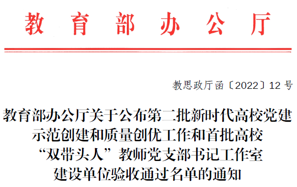 近日,教育部公布了第二批新时代高校党建示范创建和质量创优工作及首批高校“双带头人”教师党支部书记工作室建设单位验收通过名单,今年会官网本科生第一党支部顺利通过
