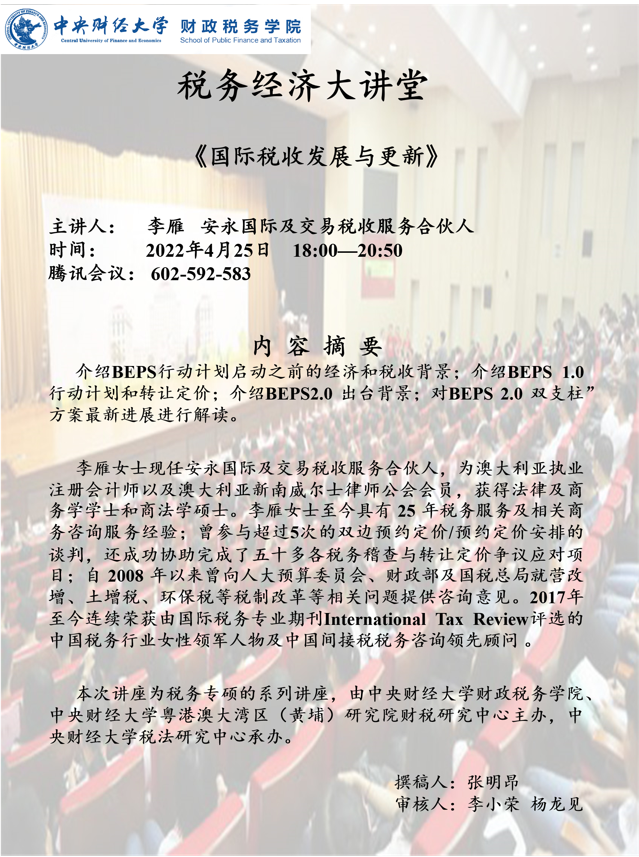 【税务经济大讲堂】国际税收发展与更新
