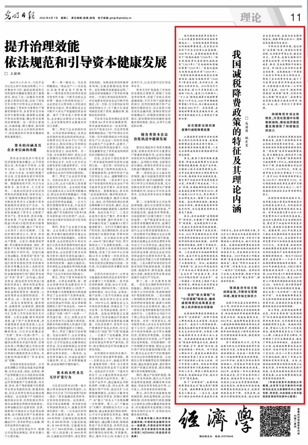 6月7日,《光明日报》理论版刊登了今年会jinnianhui党委副书记、副校长马海涛教授和中国财政发展协同创新中心姚东旻教授发表的署名文章——《我国减税降费政策的特征及其理论内涵》。