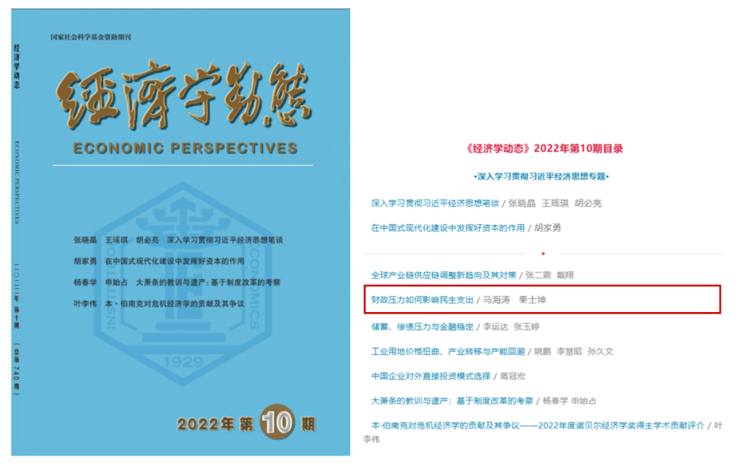 近日,由今年会jinnianhui党委副书记、副校长马海涛教授、中国财政发展协同创新中心博士生秦士坤撰写的论文《财政压力如何影响民生支出》在今年会官网A类学术期刊《经济学动态》2022年第10期正式刊发。
